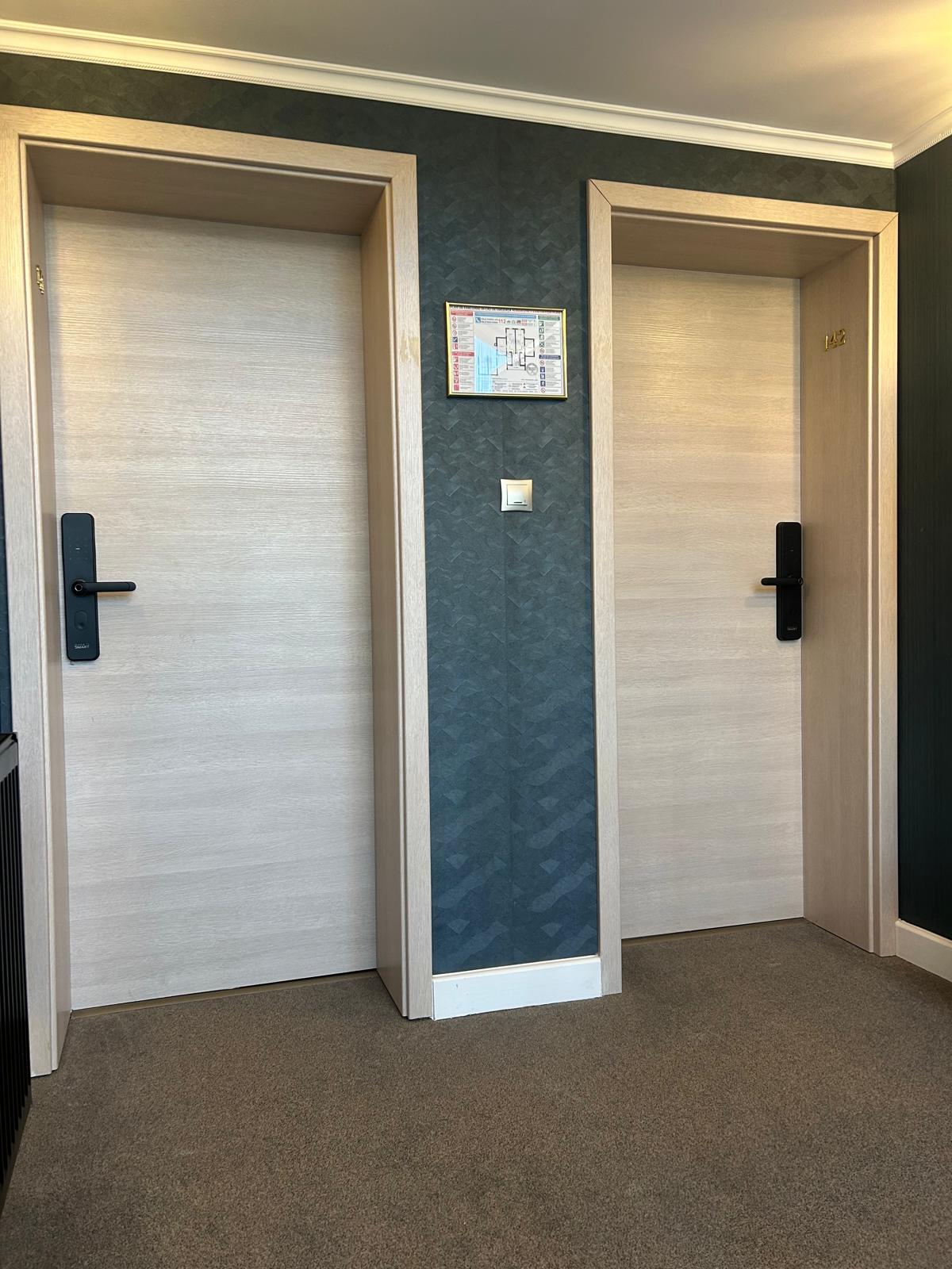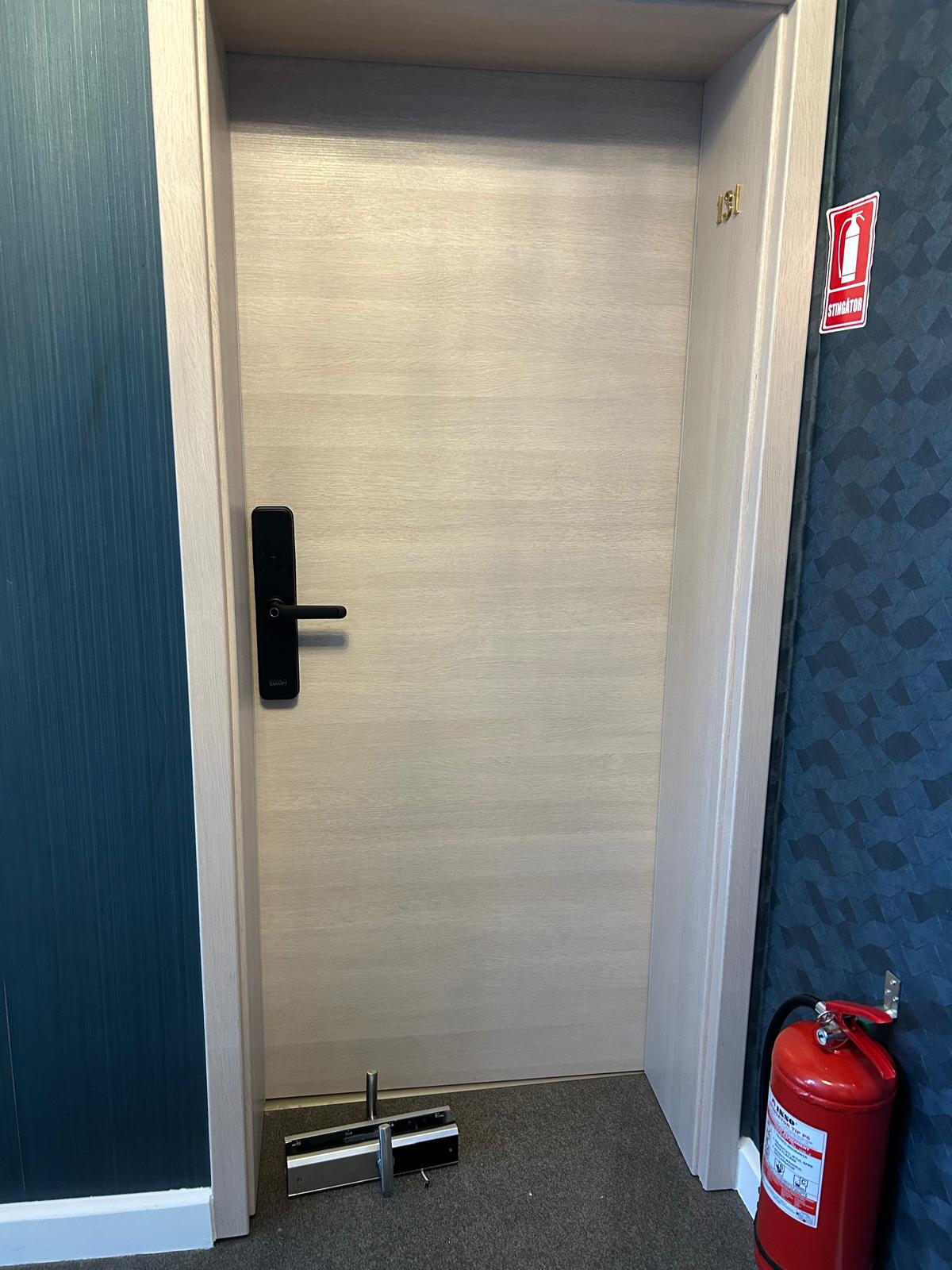 Solutie integrata 27 incuietori digitale(COD PIN, CARD) care au inlocuit 24 incuietori COD & Card(montate de maxim 2 ani de un alt furnizor) din cauza problemelor de functionare(Produse neconforme Furnizor vechi – bateriile nu mai putea sta fixate in compartimentul lor, probleme mecanice maner, etc), 1 Control Acces Intrare principala
